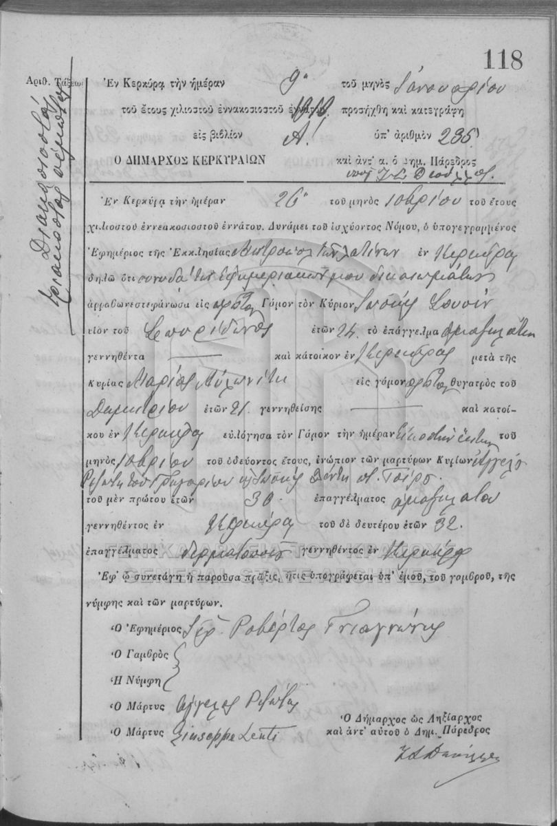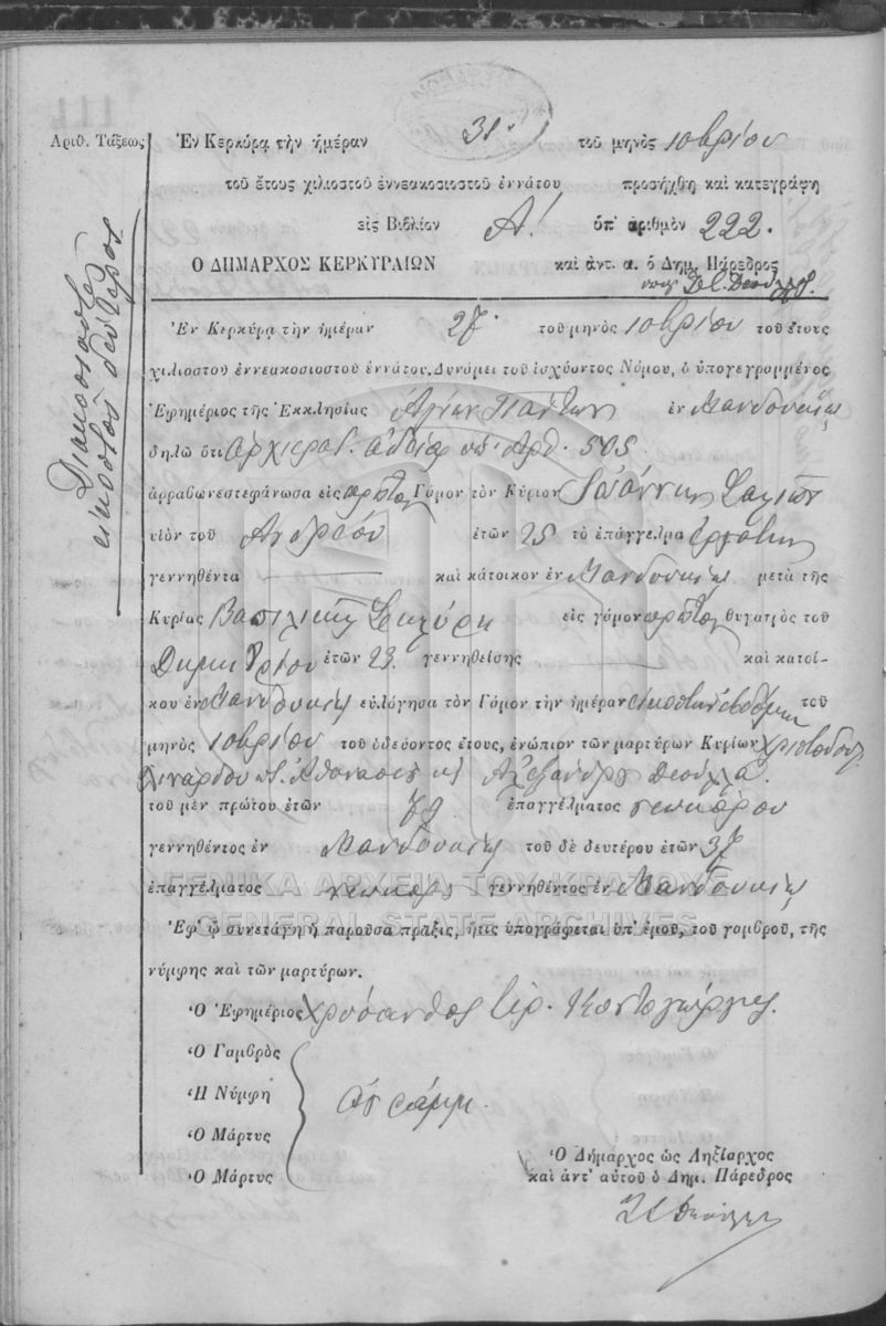 ΛΗΞΙΑΡΧΕΙΟ ΚΕΡΚΥΡΑΣ - Ληξιαρχικές Πράξεις Γάμων  [1841 - 1932]