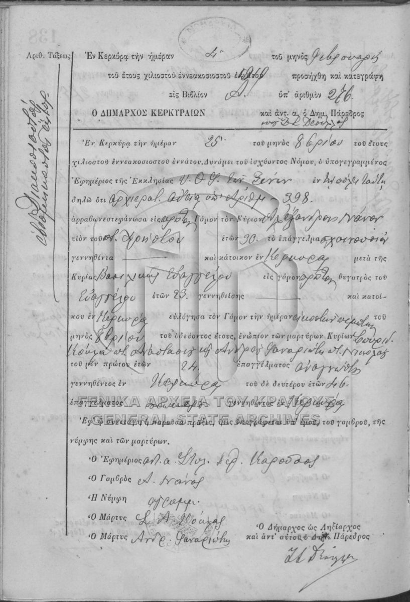 ΛΗΞΙΑΡΧΕΙΟ ΚΕΡΚΥΡΑΣ - Ληξιαρχικές Πράξεις Γάμων  [1841 - 1932]