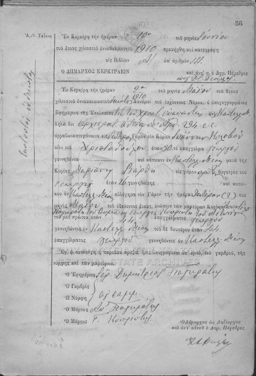 Υποφάκελος #001 - ΛΗΞΙΑΡΧΕΙΟ ΚΕΡΚΥΡΑΣ  [1910]