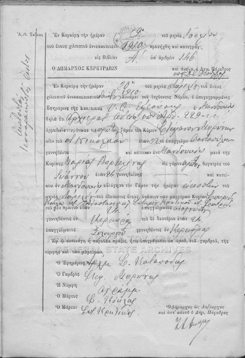 Υποφάκελος #001 - ΛΗΞΙΑΡΧΕΙΟ ΚΕΡΚΥΡΑΣ  [1910]