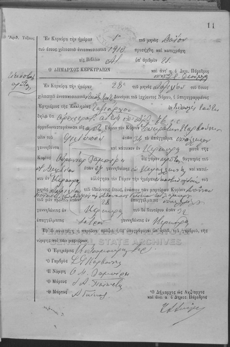 File #1913 - ΛΗΞΙΑΡΧΕΙΟ ΚΕΡΚΥΡΑΣ  [1913]