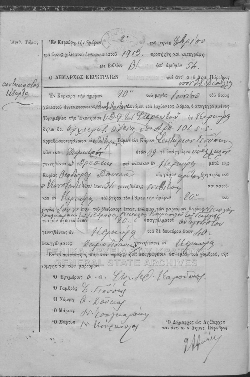 File #1913 - ΛΗΞΙΑΡΧΕΙΟ ΚΕΡΚΥΡΑΣ  [1913]