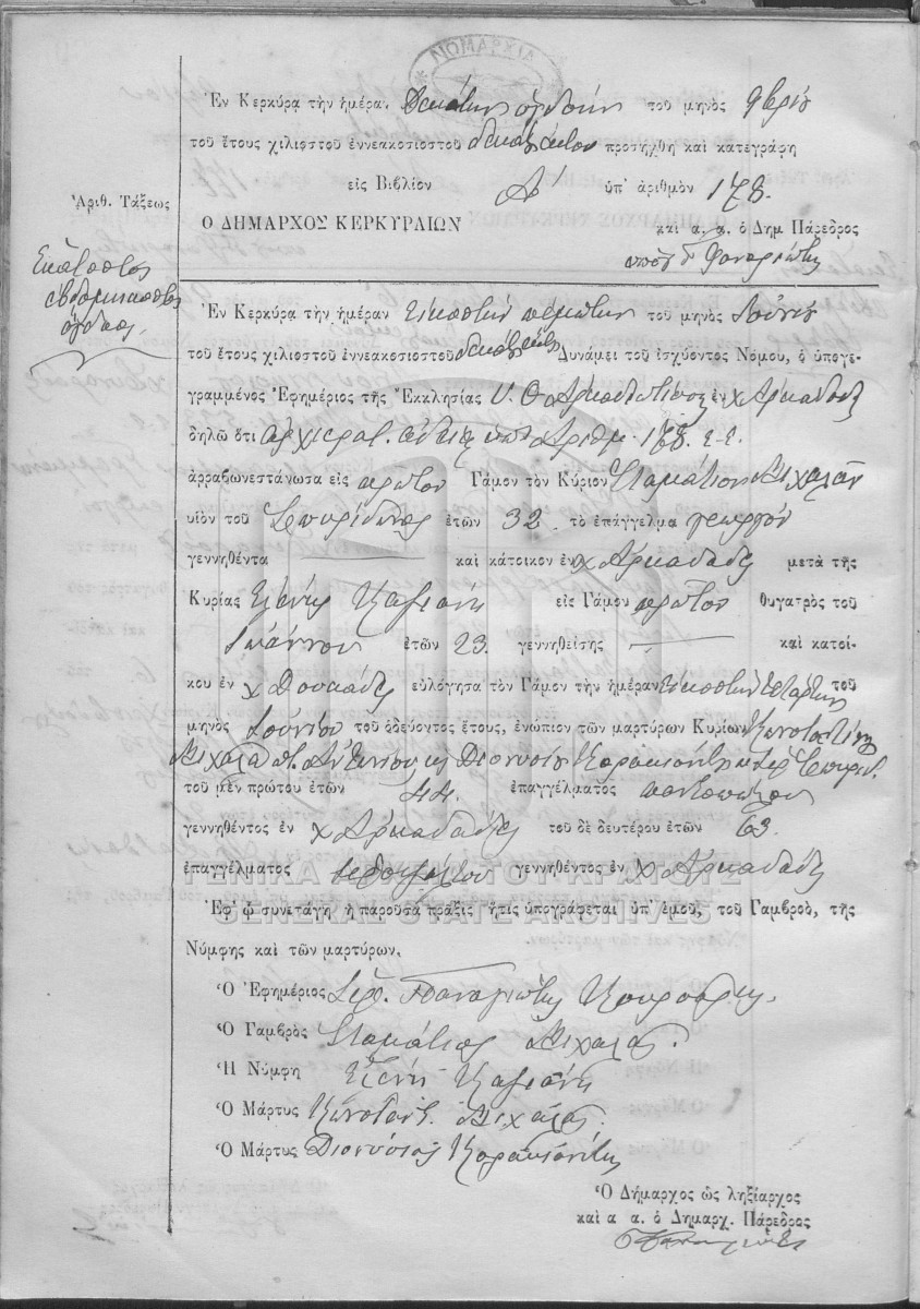 ΛΗΞΙΑΡΧΕΙΟ ΚΕΡΚΥΡΑΣ - Ληξιαρχικές Πράξεις Γάμων  [1841 - 1932]