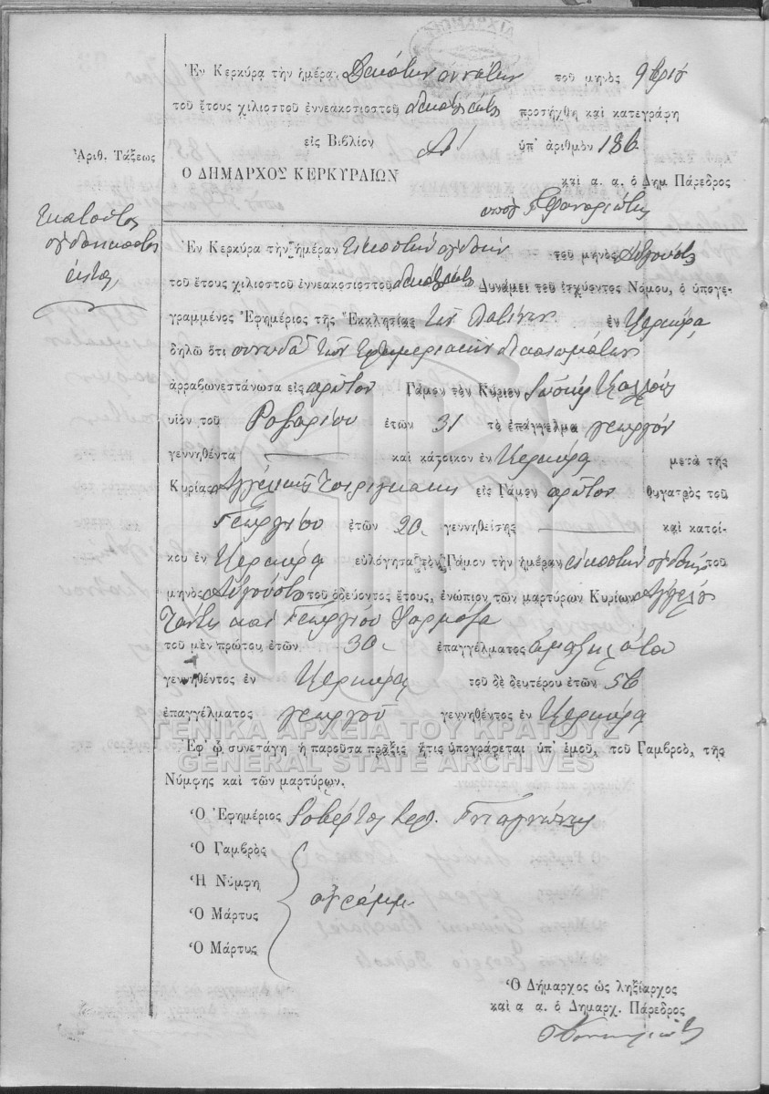 ΛΗΞΙΑΡΧΕΙΟ ΚΕΡΚΥΡΑΣ - Ληξιαρχικές Πράξεις Γάμων  [1841 - 1932]