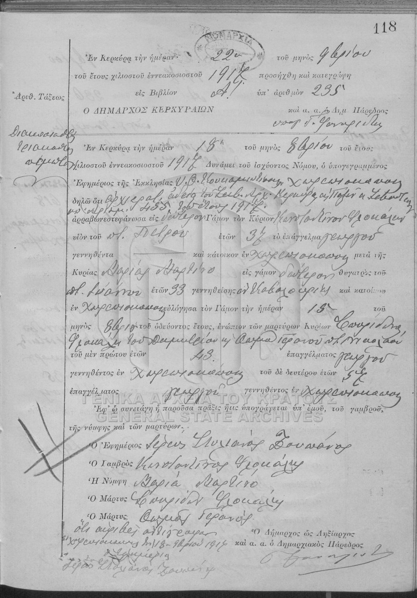 [Fonds] GRGSA-KER_REGM00 ΛΗΞΙΑΡΧΕΙΟ ΚΕΡΚΥΡΑΣ - Ληξιαρχικές Πράξεις Γάμων [1841 - 1932] Contenu: Αριθμός πράξεων 1 - 324. |