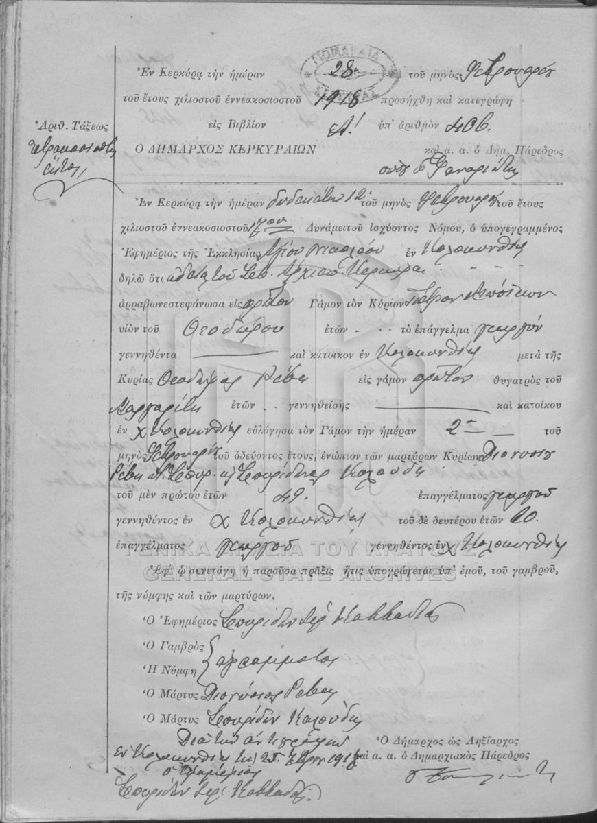 ΛΗΞΙΑΡΧΕΙΟ ΚΕΡΚΥΡΑΣ - Ληξιαρχικές Πράξεις Γάμων  [1841 - 1932]