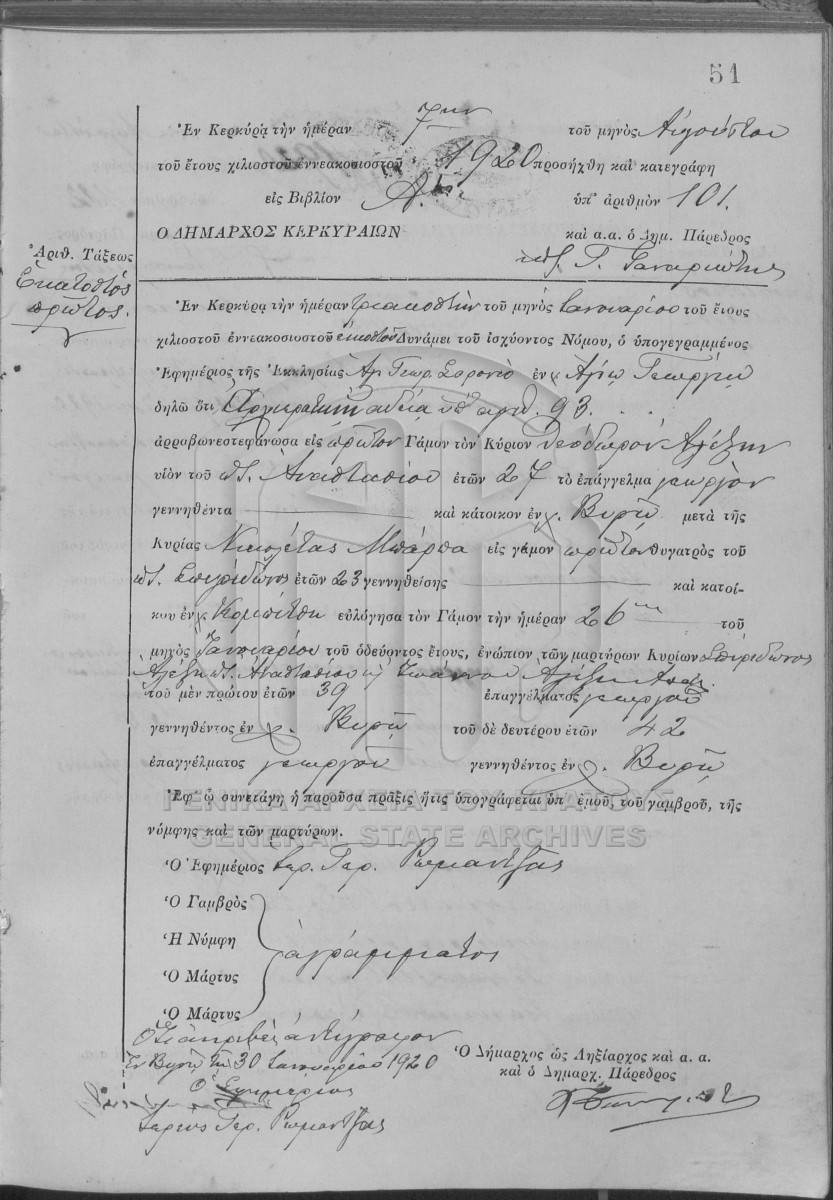 File #1920 - ΛΗΞΙΑΡΧΕΙΟ ΚΕΡΚΥΡΑΣ  [1920]