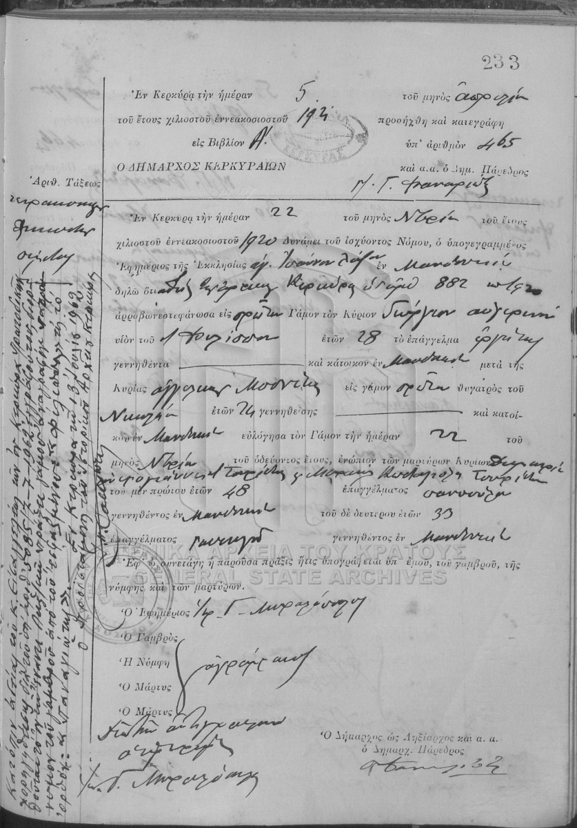 Υποφάκελος #001 - ΛΗΞΙΑΡΧΕΙΟ ΚΕΡΚΥΡΑΣ  [1920]