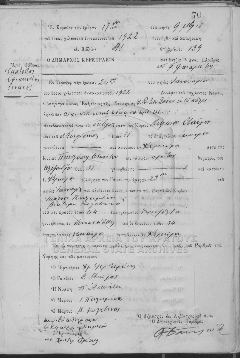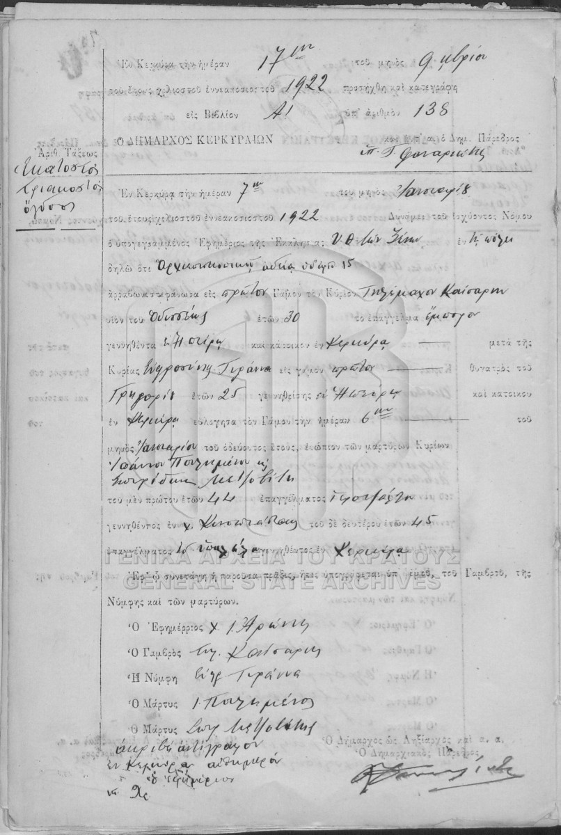 Fichier #1922 - ΛΗΞΙΑΡΧΕΙΟ ΚΕΡΚΥΡΑΣ  [1922]