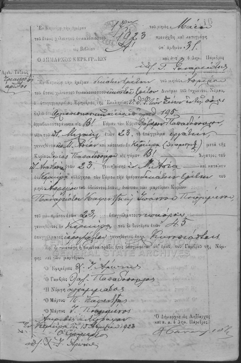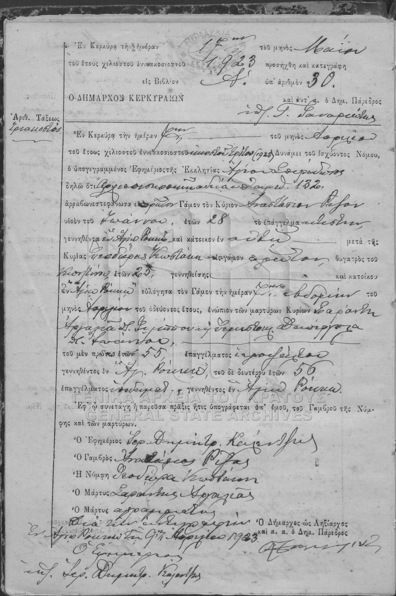 File #1923 - ΛΗΞΙΑΡΧΕΙΟ ΚΕΡΚΥΡΑΣ  [1923]