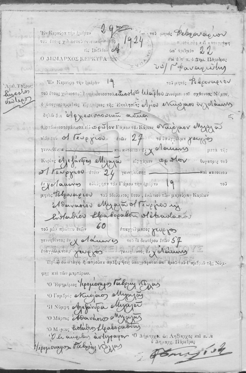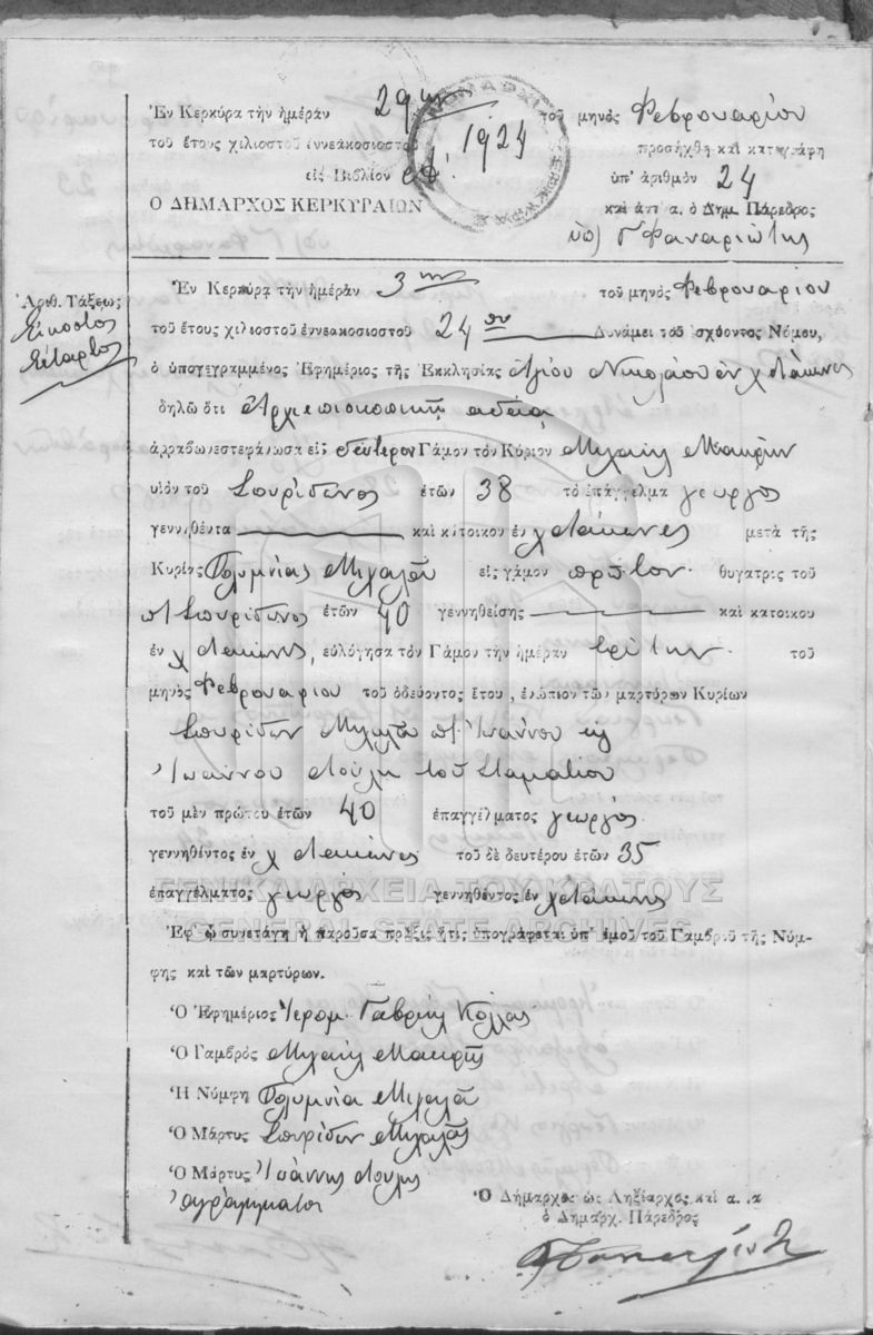 [Αρχείο] GRGSA-KER_REGM00 ΛΗΞΙΑΡΧΕΙΟ ΚΕΡΚΥΡΑΣ - Ληξιαρχικές Πράξεις Γάμων [1841 - 1932] Περιεχόμενα: Αριθμός πράξεων 1 - 324. |