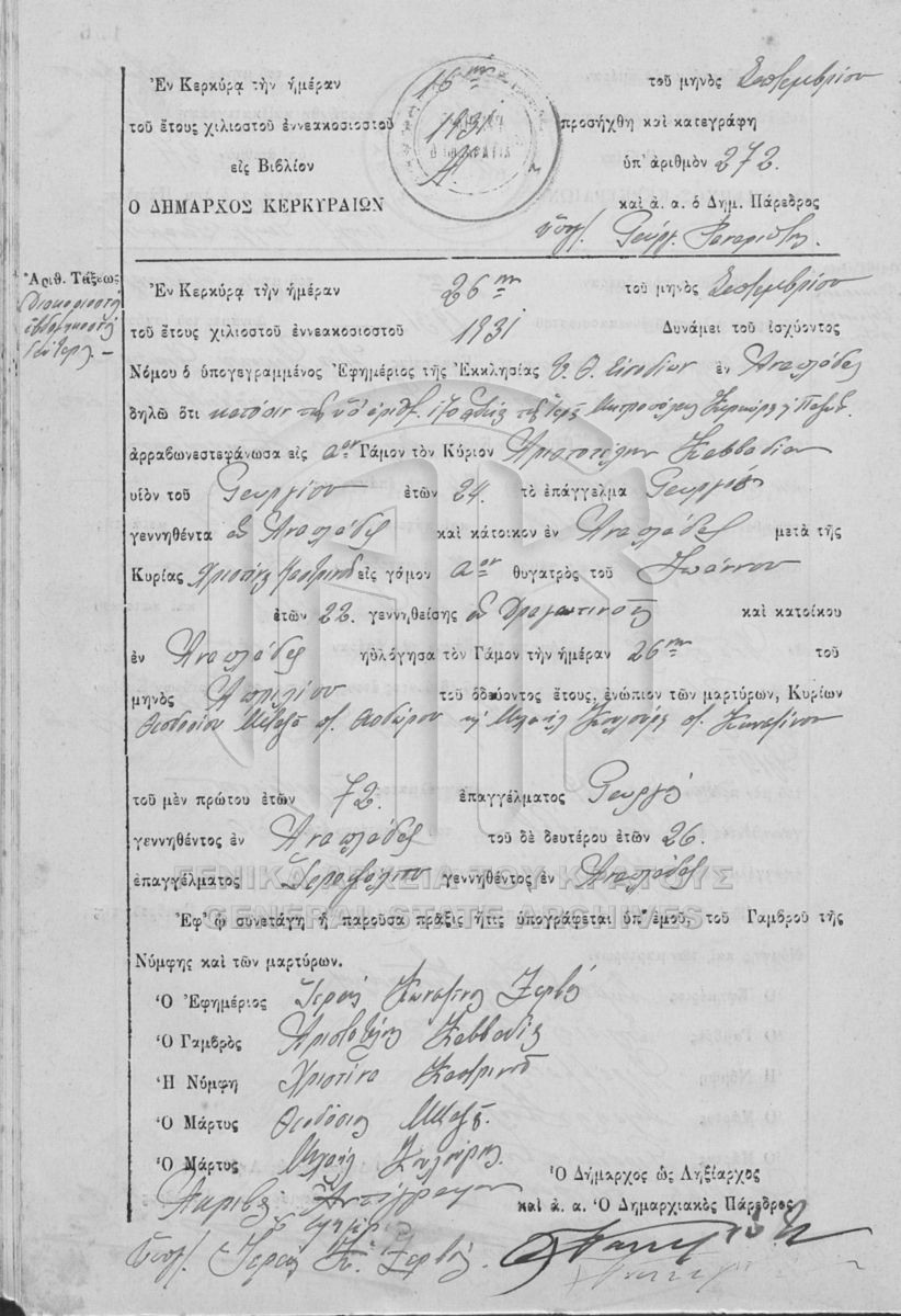ΛΗΞΙΑΡΧΕΙΟ ΚΕΡΚΥΡΑΣ - Ληξιαρχικές Πράξεις Γάμων  [1841 - 1932]