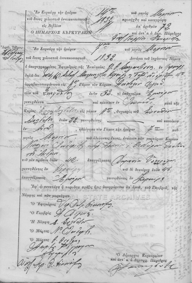 ΛΗΞΙΑΡΧΕΙΟ ΚΕΡΚΥΡΑΣ - Ληξιαρχικές Πράξεις Γάμων  [1841 - 1932]