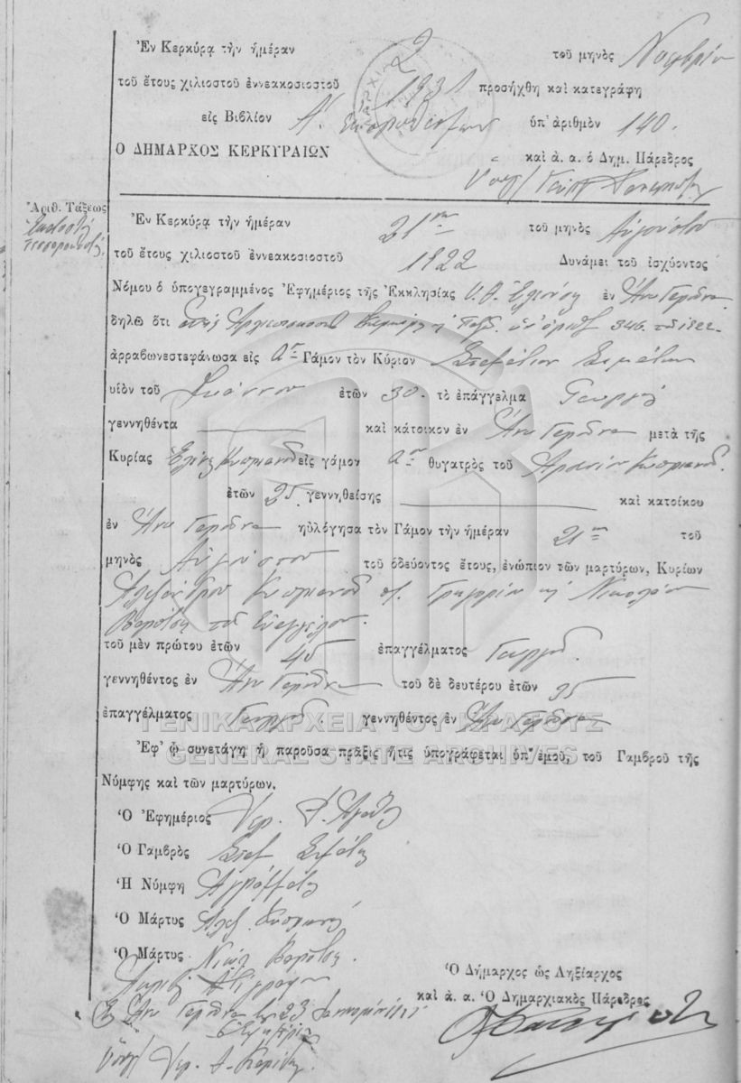 [Fonds] GRGSA-KER_REGME0 ΛΗΞΙΑΡΧΕΙΟ ΚΕΡΚΥΡΑΣ - Ληξιαρχικές Πράξεις Γάμων - Εκπρόθεσμα [1841 - 1932] Contenu: Αριθμός πράξεων 1 - 41. Αριθμός πράξεων 1 - 2. Αριθμός πράξεων 1 - 146. Αριθμός πράξεων 1 - 4. Αριθμός πράξεων 1 - 100. ... |