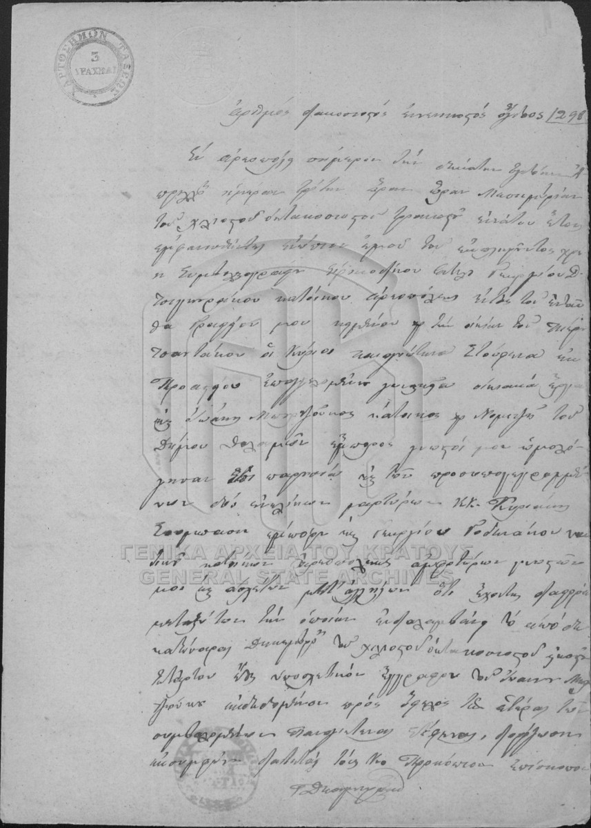 [Τεκμήριο] GRGSA-LAK_NOT001.01.F000005.IT000298 Τεκμήριο #298 [18 Απριλίου 1839] Συμβολαιογραφική πράξη. Ορισμός διαιτητών. |