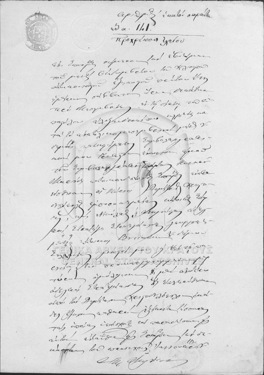 [Item] GRGSA-LAK_NOT021.01.F000001.IT000141 Item #141 [7 Οκτωβρίου 1861] Συμβολαιογραφική πράξη. Προχρέωση ελαίου. |
