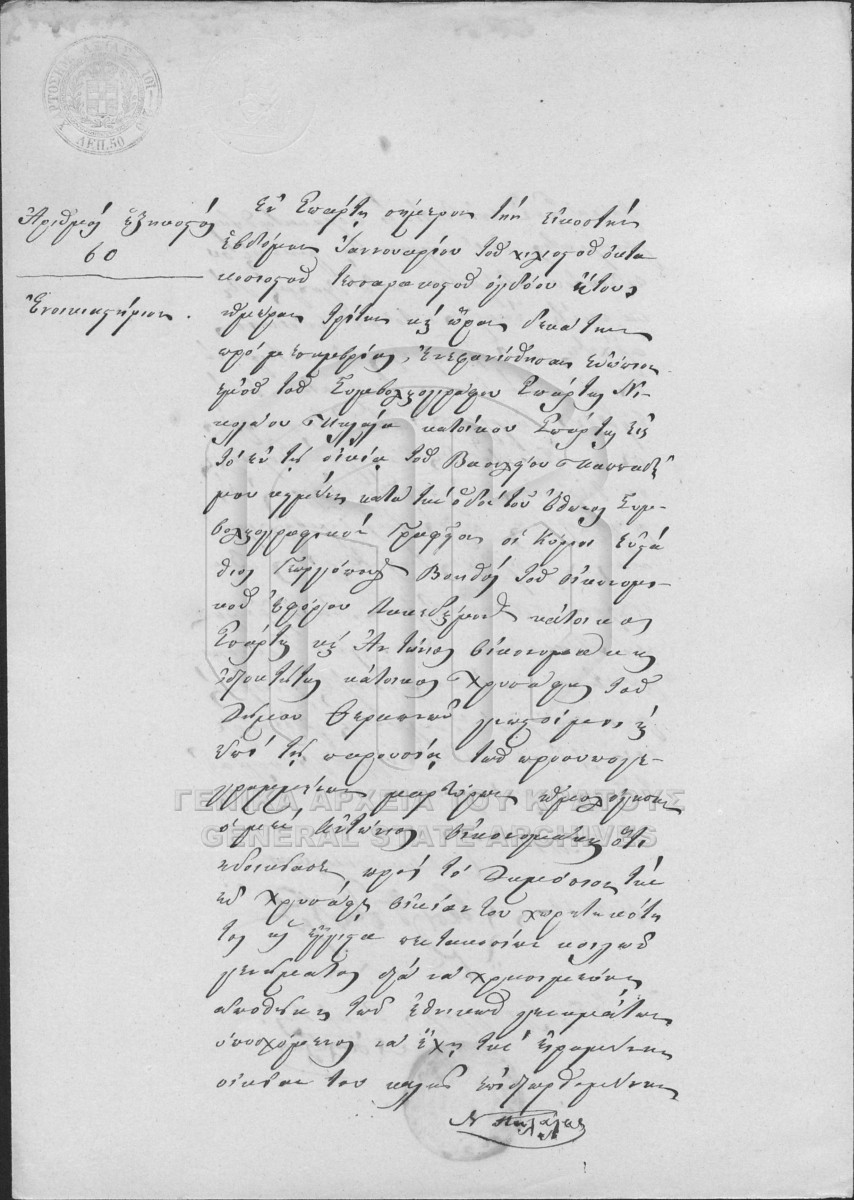 [Τεκμήριο] GRGSA-LAK_NOT023.01.F000001.IT000060 Τεκμήριο #060 [27 Ιανουαρίου 1848] Συμβολαιογραφική πράξη. Ενοικιαστήριο. |