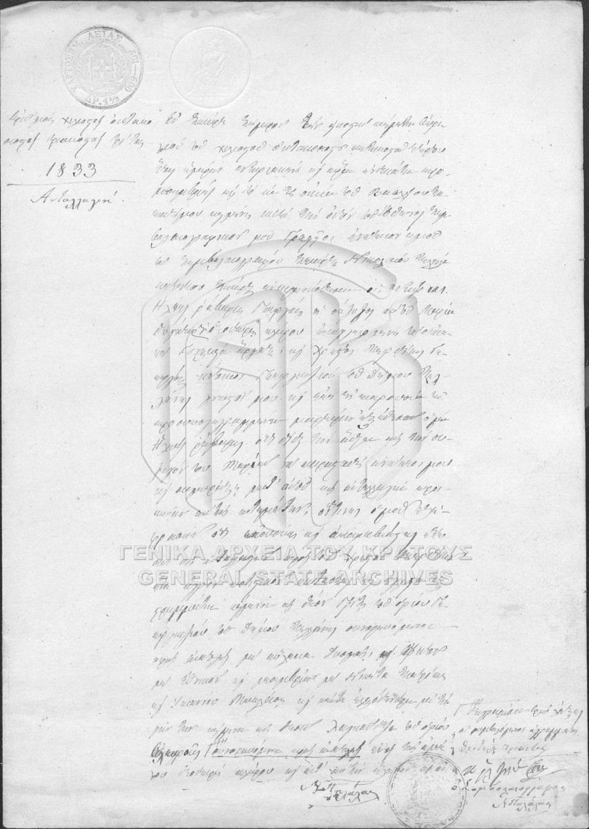 [Item] GRGSA-LAK_NOT023.01.F000006.IT001833 Item #1833 [25 Απριλίου 1854] Notarial deed. Deed of exchange. |
