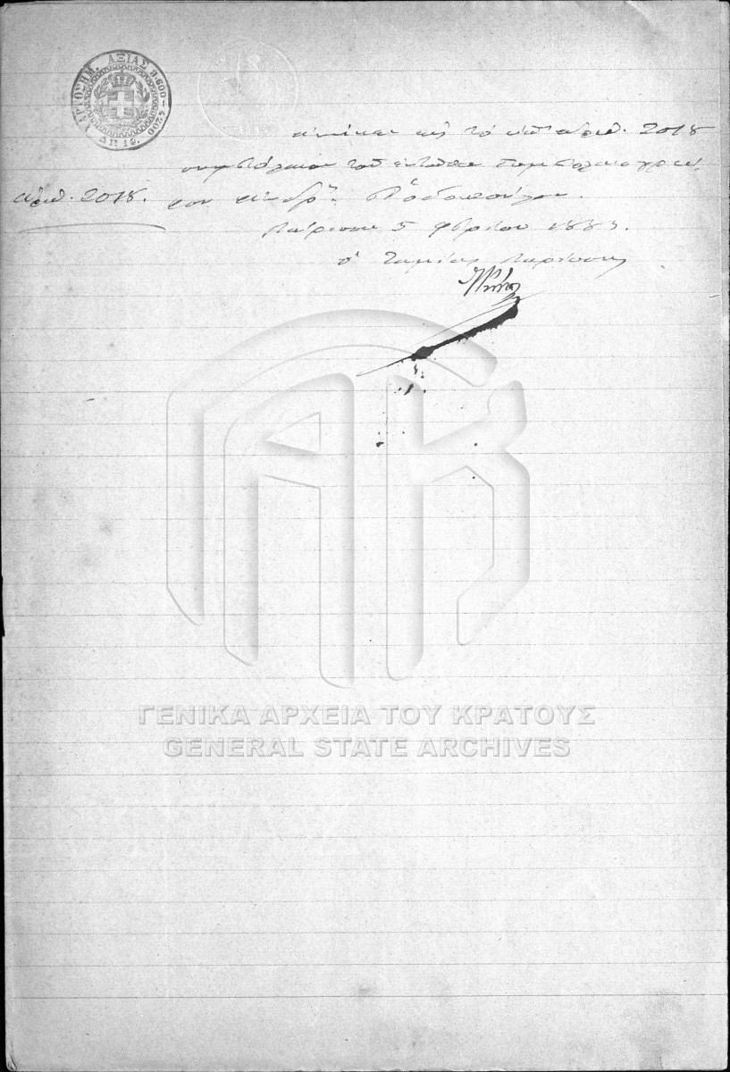 [Item] GRGSA-LAR_NOT001.01.F000007.IT002018 Item #2018 [5 Νοεμβρίου 1883] Notarial deed. Lease. |