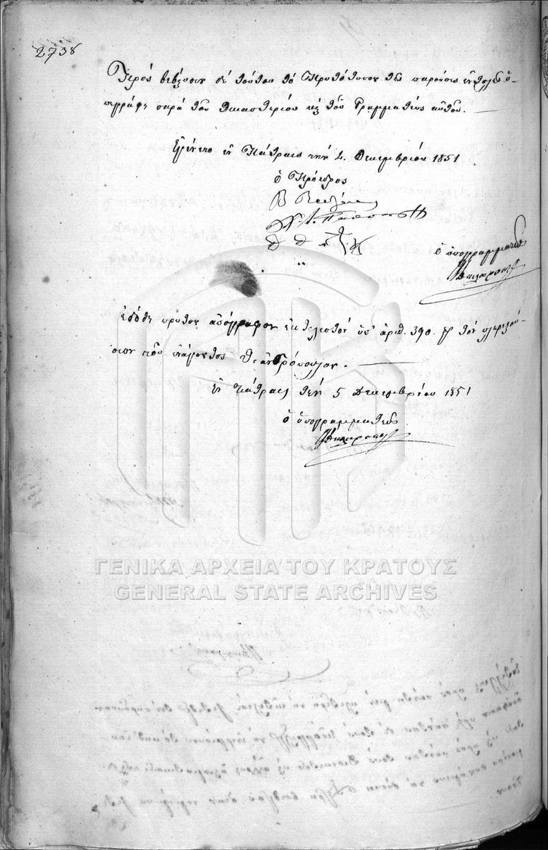 File #017 - PATRAS COURT OF FIRST INSTANCE ARCHIVE. COMMERCIAL TRIBUNAL  [1851]
