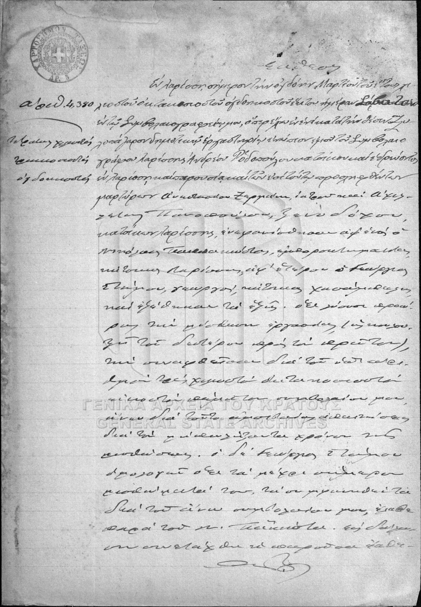[Τεκμήριο] GRGSA-LAR_NOT001.01.F000016.IT004380 Τεκμήριο #4380 [8 Μαρτίου 1886] Συμβολαιογραφική πράξη. Έκθεση. |