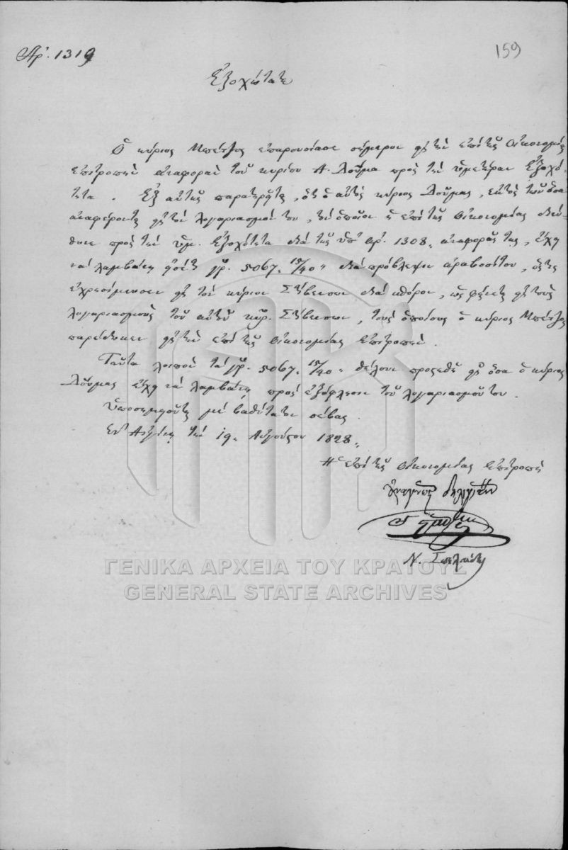 [Αρχείο] GRGSA-CSA_PAK001.00 Αρχείο Γενικής Γραμματείας (περιόδου Κυβερνήτη Ι. Καποδίστρια) [1828 - 1833] Περιέχει επιστολές, αποφάσεις, λογαριασμούς, αναφορές, αποδείξεις, καταλόγους, αιτήσεις, διατάγματα και διάφορα έγγραφα. |