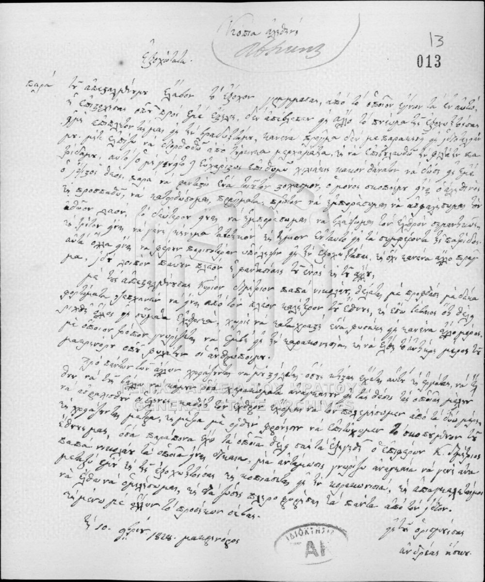 Αρχείο Γενικής Γραμματείας (περιόδου Κυβερνήτη Ι. Καποδίστρια)  [1828 - 1833]