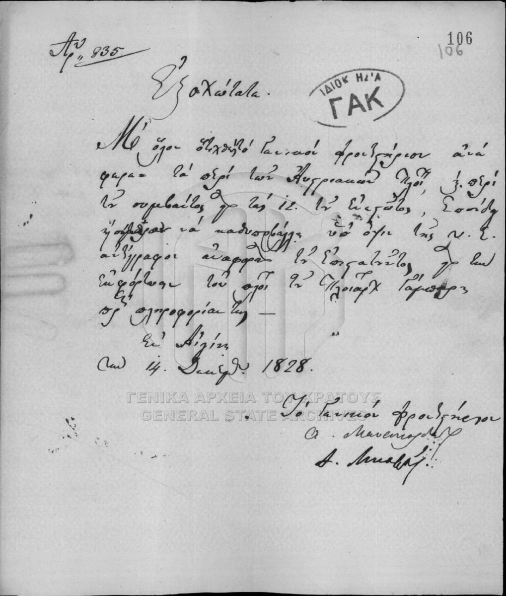 Αρχείο Γενικής Γραμματείας (περιόδου Κυβερνήτη Ι. Καποδίστρια)  [1828 - 1833]