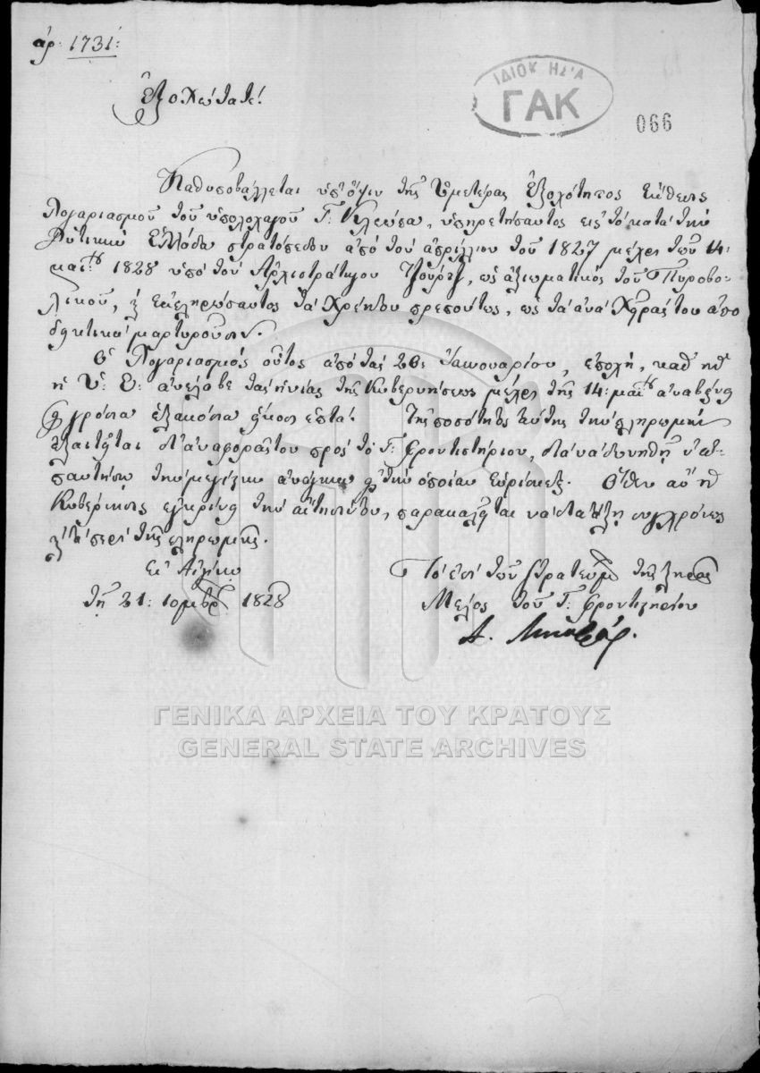 Φάκελος #174 - Γενική Γραμματεία  [1828]