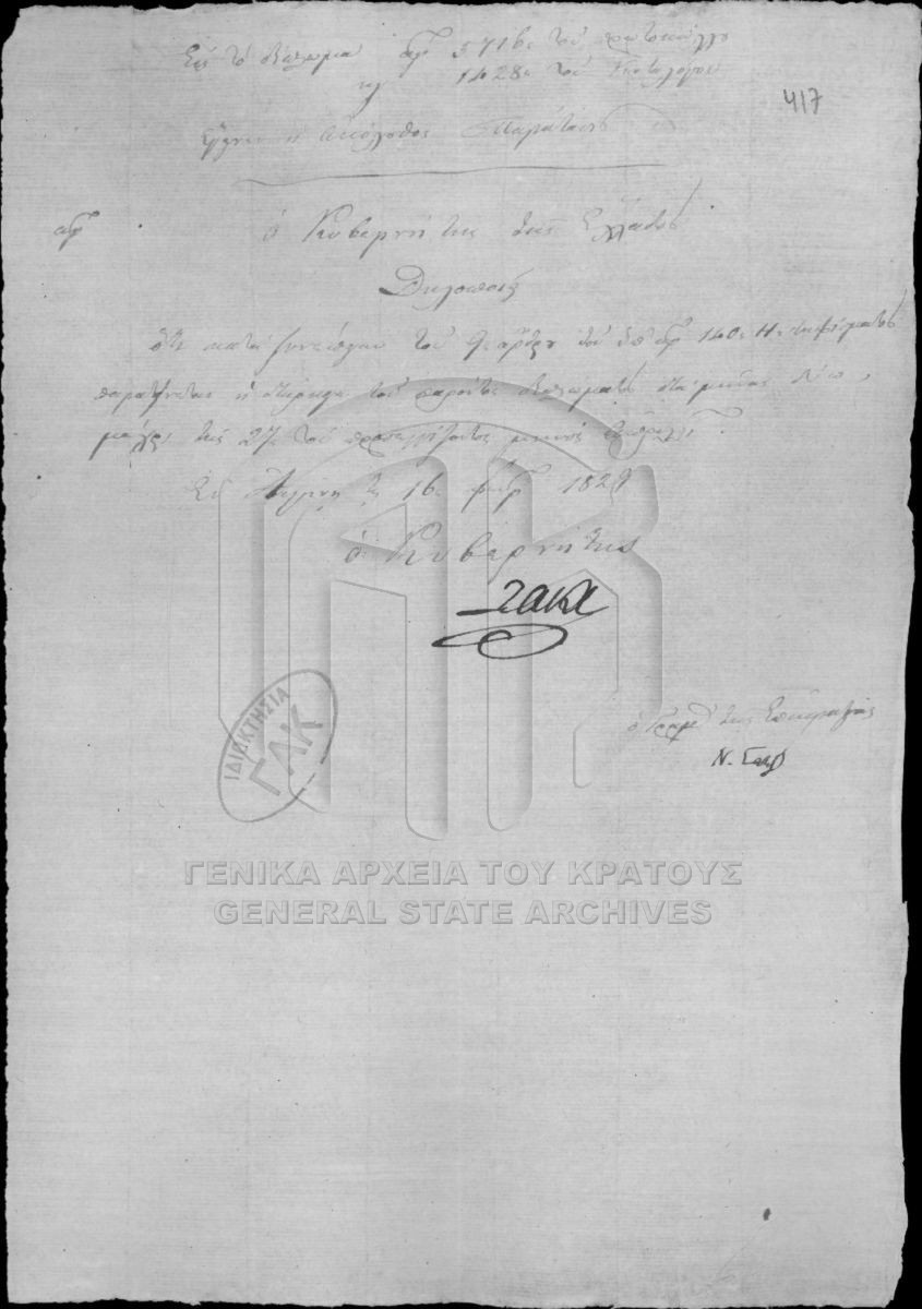 Αρχείο Γενικής Γραμματείας (περιόδου Κυβερνήτη Ι. Καποδίστρια)  [1828 - 1833]