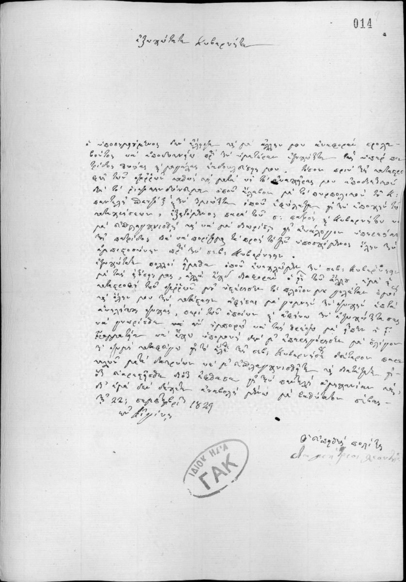 [Fichier] GRGSA-CSA_PAK001.00.F000221 Fichier #221 - Γενική Γραμματεία [1829] Επιστολές και διάφορα υπηρεσιακά έγγραφα. |
