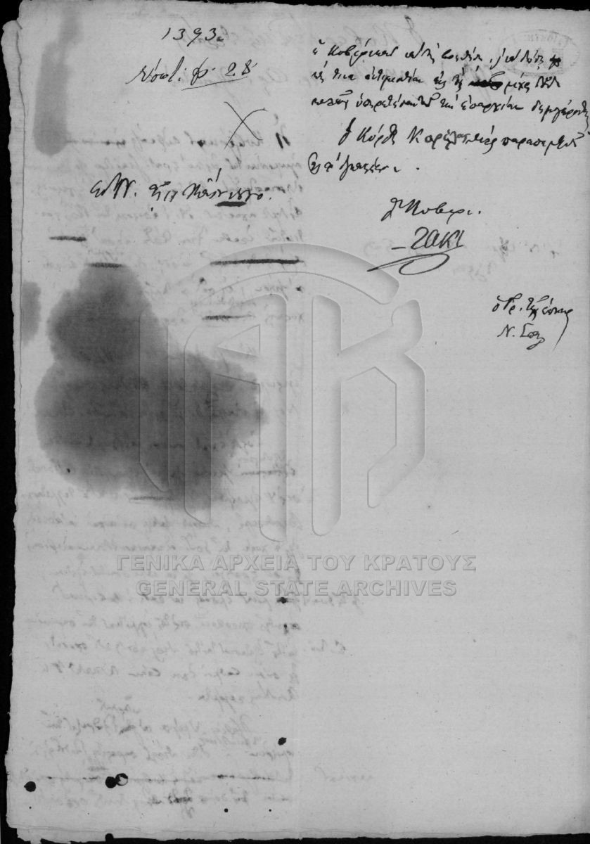 [Fonds] GRGSA-CSA_PAK001.00 Archive of General Secretariat - Archive of General Secretariat [1828 - 1833] Περιέχει επιστολές, αποφάσεις, λογαριασμούς, αναφορές, αποδείξεις, καταλόγους, αιτήσεις, διατάγματα και διάφορα έγγραφα. |