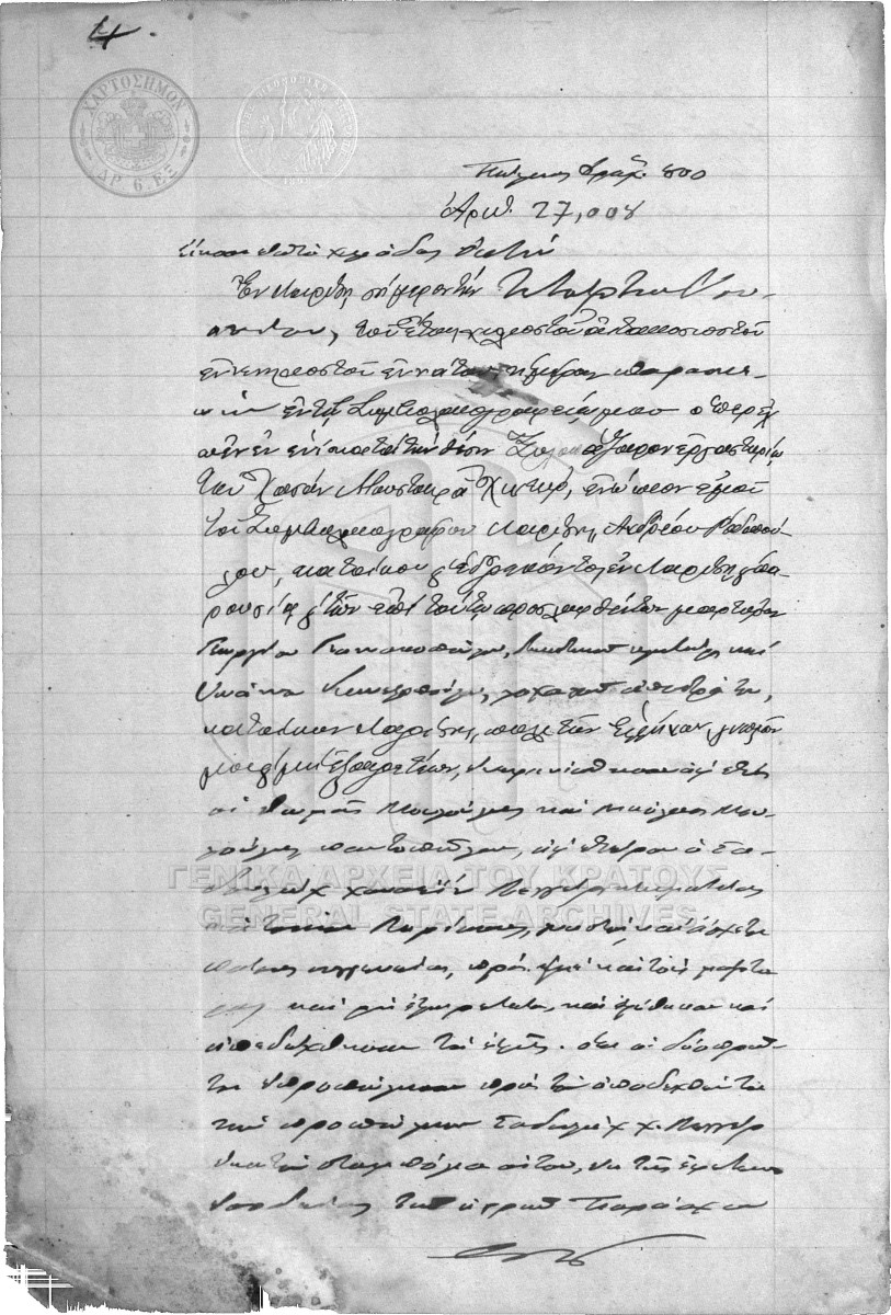 [Pièce] GRGSA-LAR_NOT001.01.F000072.IT027008 Pièce #27008 [4 Ιουνίου 1899] Συμβολαιογραφική πράξη. Πώληση. |