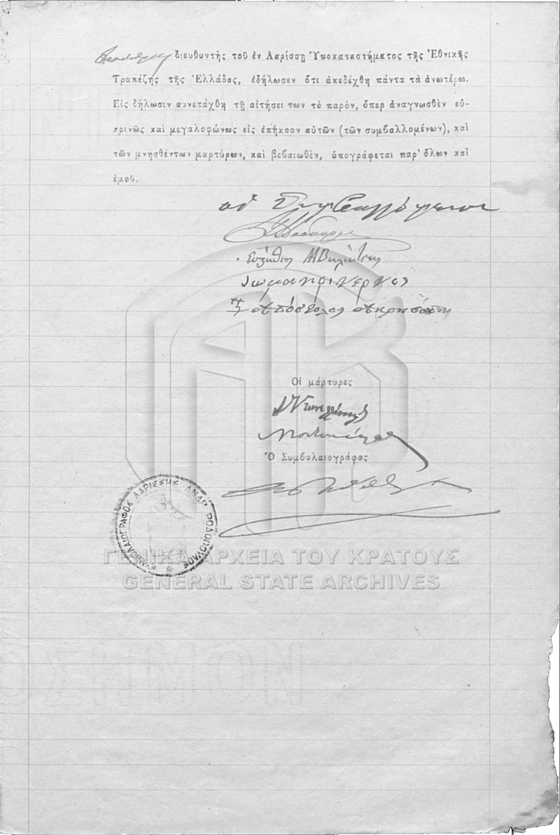 [Pièce] GRGSA-LAR_NOT001.01.F000077.IT028518 Pièce #28518 [27 Ιανουαρίου 1900] Συμβολαιογραφική πράξη. Χρέος. |