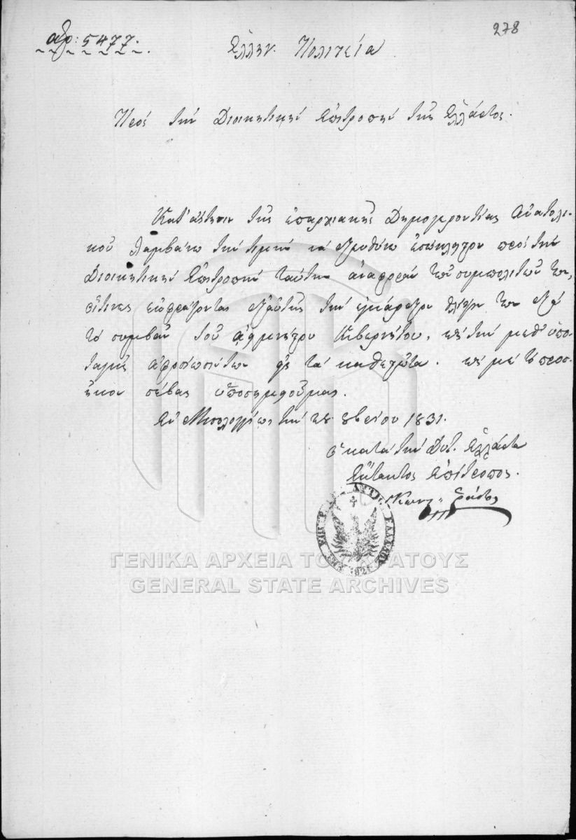 Archive of General Secretariat - Archive of General Secretariat   [1828 - 1833]