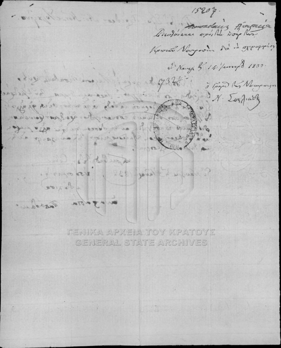 [Αρχείο] GRGSA-CSA_PAK001.00 Αρχείο Γενικής Γραμματείας (περιόδου Κυβερνήτη Ι. Καποδίστρια) [1828 - 1833] Περιέχει επιστολές, αποφάσεις, λογαριασμούς, αναφορές, αποδείξεις, καταλόγους, αιτήσεις, διατάγματα και διάφορα έγγραφα. |