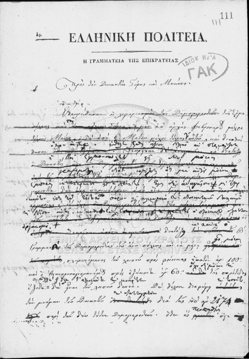 Αρχείο Γενικής Γραμματείας (περιόδου Κυβερνήτη Ι. Καποδίστρια)  [1828 - 1833]