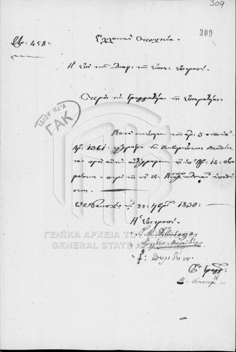 [Fichier] GRGSA-CSA_PAK001.00.F000252a Fichier #252a - Γενική Γραμματεία [1830] Επιστολές και υπηρεσιακά έγγραφα. |