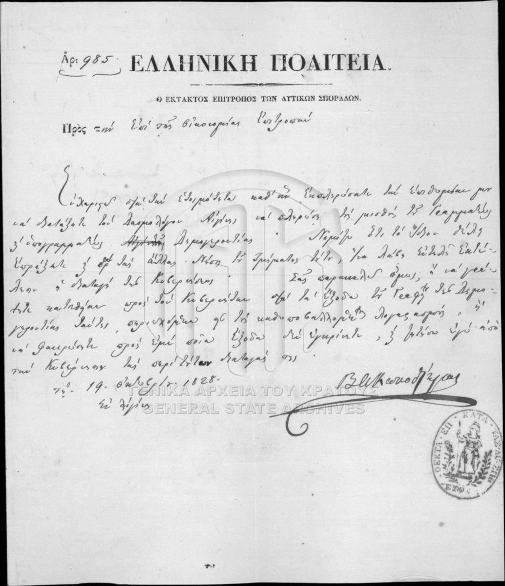 Αρχείο Επιτροπής Οικονομίας (περιόδου Κυβερνήτη Ι. Καποδίστρια)  [1828 - 1833]