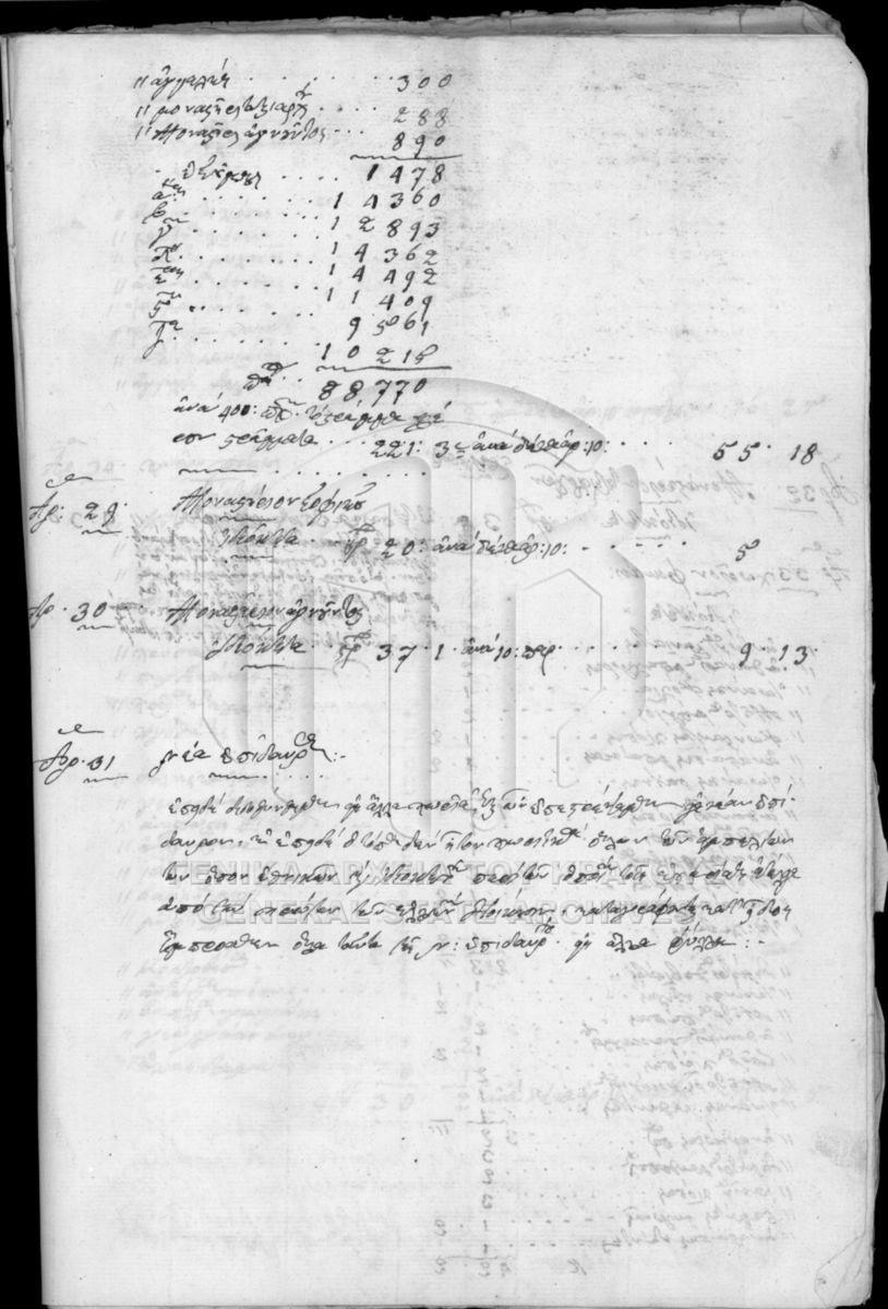Περιέχει επιστολές, λογαριασμούς, ισολογισμούς, λογιστικές καταστάσεις, αποδείξεις (εισπράξεων και πληρωμών), διαταγές, κατάστιχα, γραμμά...