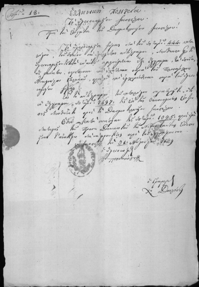 Αρχείο Επιτροπής Οικονομίας (περιόδου Κυβερνήτη Ι. Καποδίστρια)  [1828 - 1833]