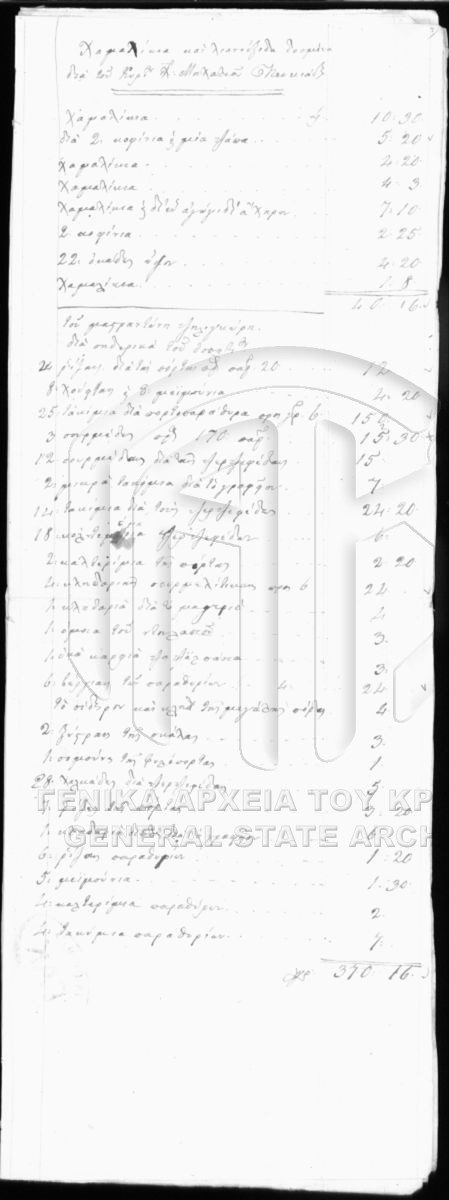 Επιστολές, λογαριασμοί, ισολογισμοί, αποδείξεις και διάφορα υπηρεσιακά έγγραφα.