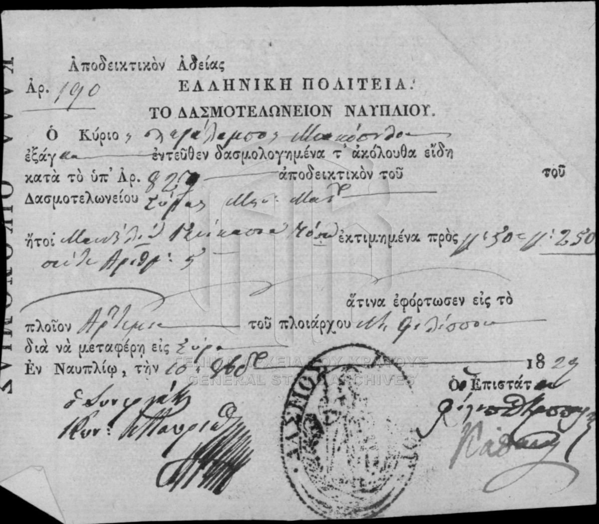 Αρχείο Επιτροπής Οικονομίας (περιόδου Κυβερνήτη Ι. Καποδίστρια)  [1828 - 1833]