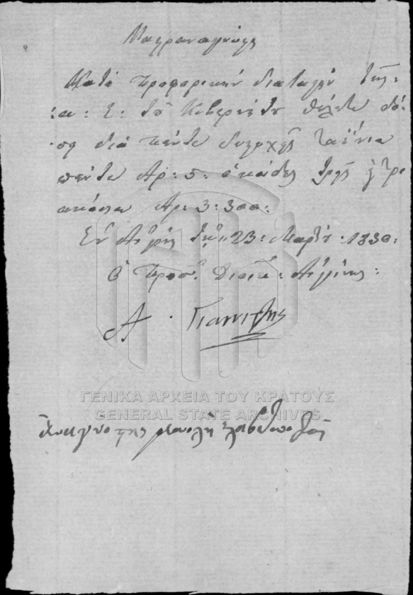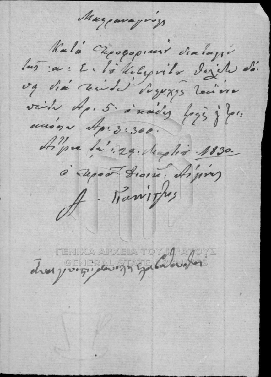 Αρχείο Επιτροπής Οικονομίας (περιόδου Κυβερνήτη Ι. Καποδίστρια)  [1828 - 1833]