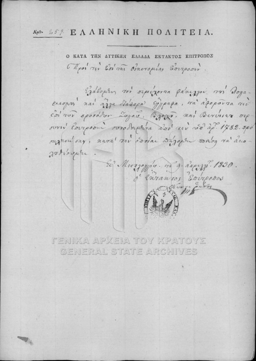 [Fonds] GRGSA-CSA_PAK002.00 Αρχείο Επιτροπής Οικονομίας (περιόδου Κυβερνήτη Ι. Καποδίστρια) [1828 - 1833] Περιέχει επιστολές, λογαριασμούς, ισολογισμούς, λογιστικές καταστάσεις, αποδείξεις (εισπράξεων και πληρωμών), διαταγές, κατάστιχα, γραμμά... |