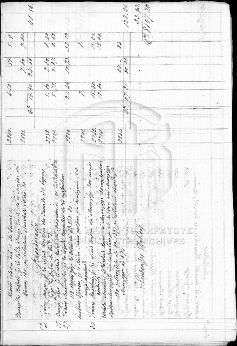 Περιέχει επιστολές, λογαριασμούς, ισολογισμούς, λογιστικές καταστάσεις, αποδείξεις (εισπράξεων και πληρωμών), διαταγές, κατάστιχα, γραμμά...