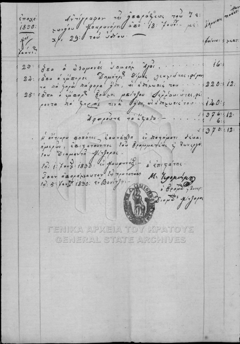 Περιέχει επιστολές, λογαριασμούς, ισολογισμούς, λογιστικές καταστάσεις, αποδείξεις (εισπράξεων και πληρωμών), διαταγές, κατάστιχα, γραμμά...