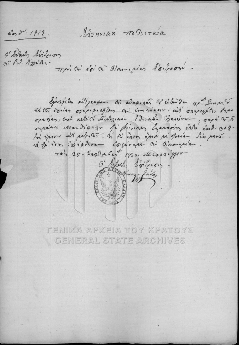 [Αρχείο] GRGSA-CSA_PAK002.00 Αρχείο Επιτροπής Οικονομίας (περιόδου Κυβερνήτη Ι. Καποδίστρια) [1828 - 1833] Περιέχει επιστολές, λογαριασμούς, ισολογισμούς, λογιστικές καταστάσεις, αποδείξεις (εισπράξεων και πληρωμών), διαταγές, κατάστιχα, γραμμά... |