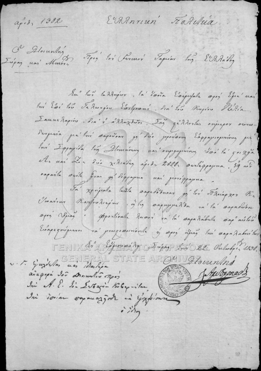 [Fichier] GRGSA-CSA_PAK002.00.F000148 Fichier #148 - Επιτροπή Οικονομίας [1830] Επιστολές, λογαριασμοί, δημοπρασίες και διάφορα υπηρεσιακά έγγραφα. |