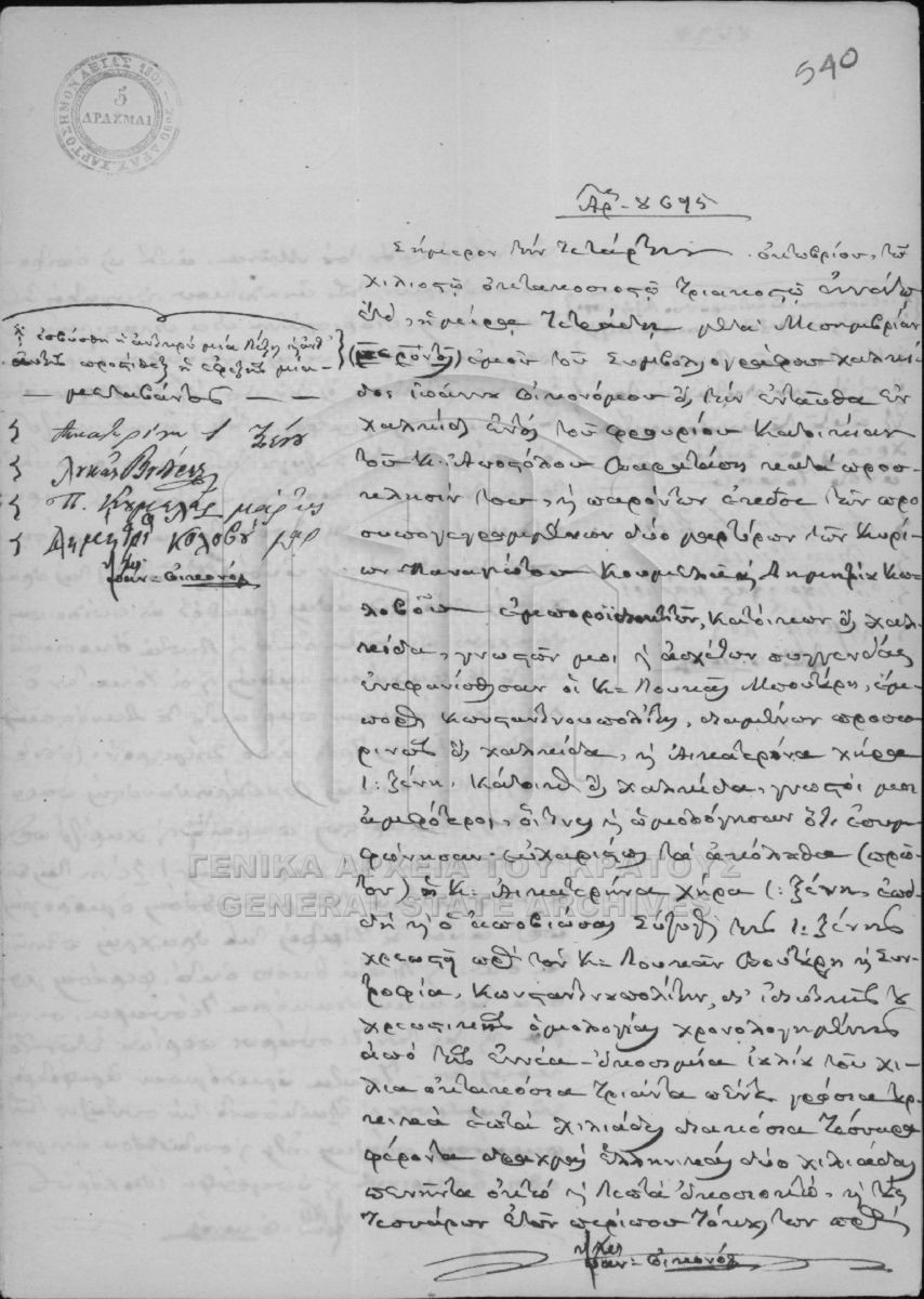 [Pièce] GRGSA-EUB_NOT001.09.01.F000023.IT008695 Pièce #8695 [4 Οκτωβρίου 1839] Συμβολαιογραφική πράξη. |